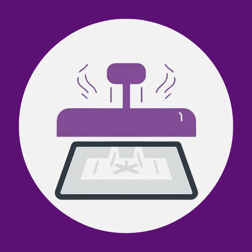 Aplica tinta diretamente com tela, garantindo cores intensas e acabamento uniforme. Perfeita para grandes tiragens com ótima qualidade.